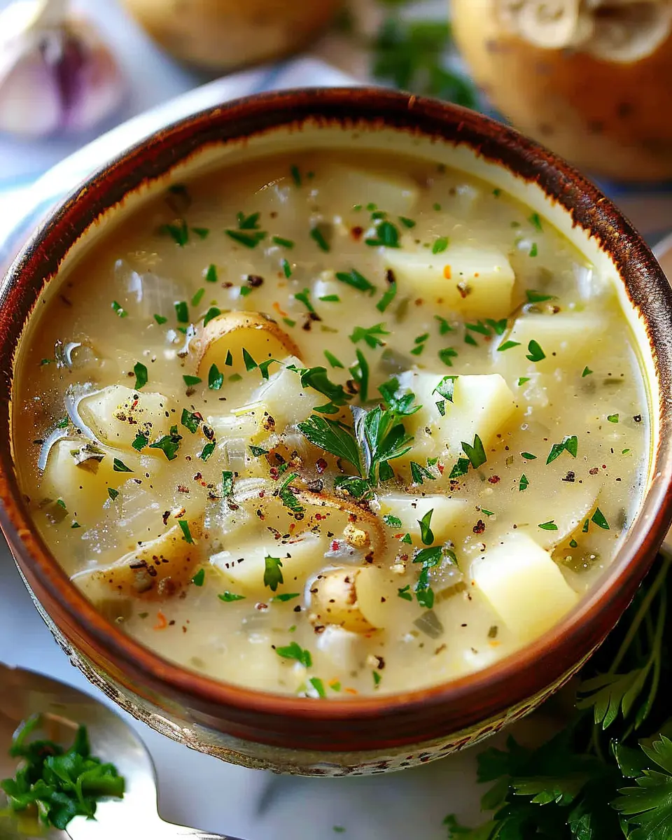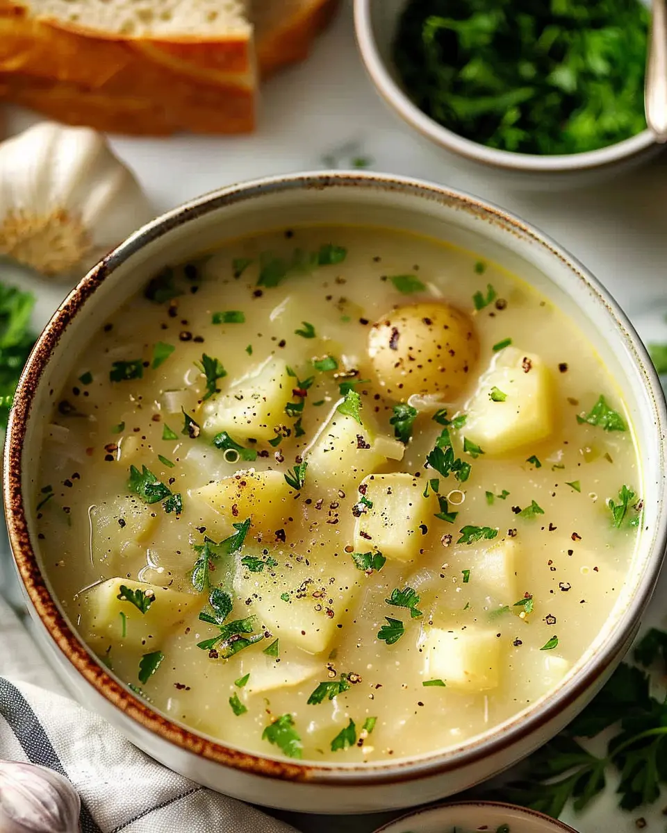 PrintBest Hangover Cure Soup: Comforting Garlic Potato Soup with Turkey Bacon