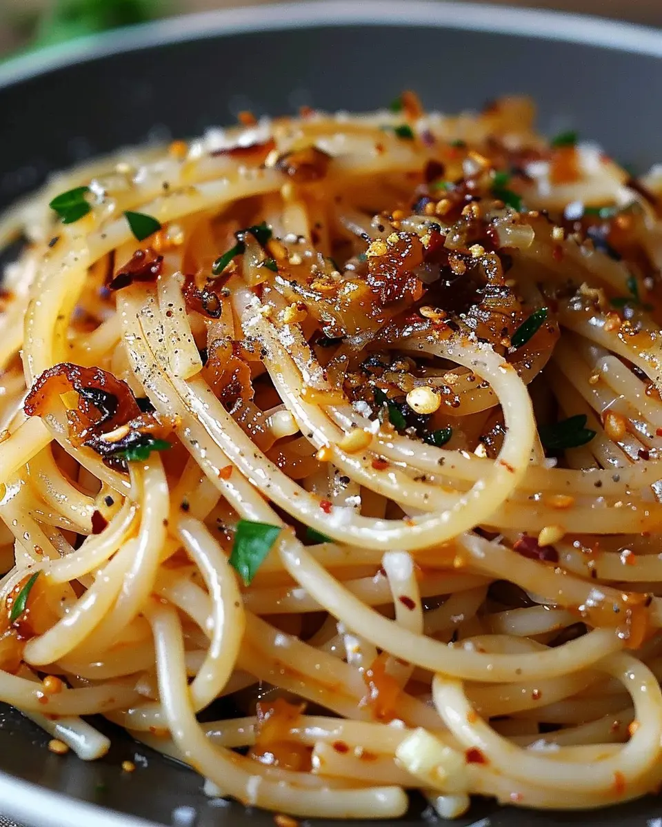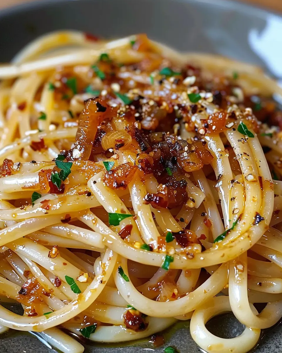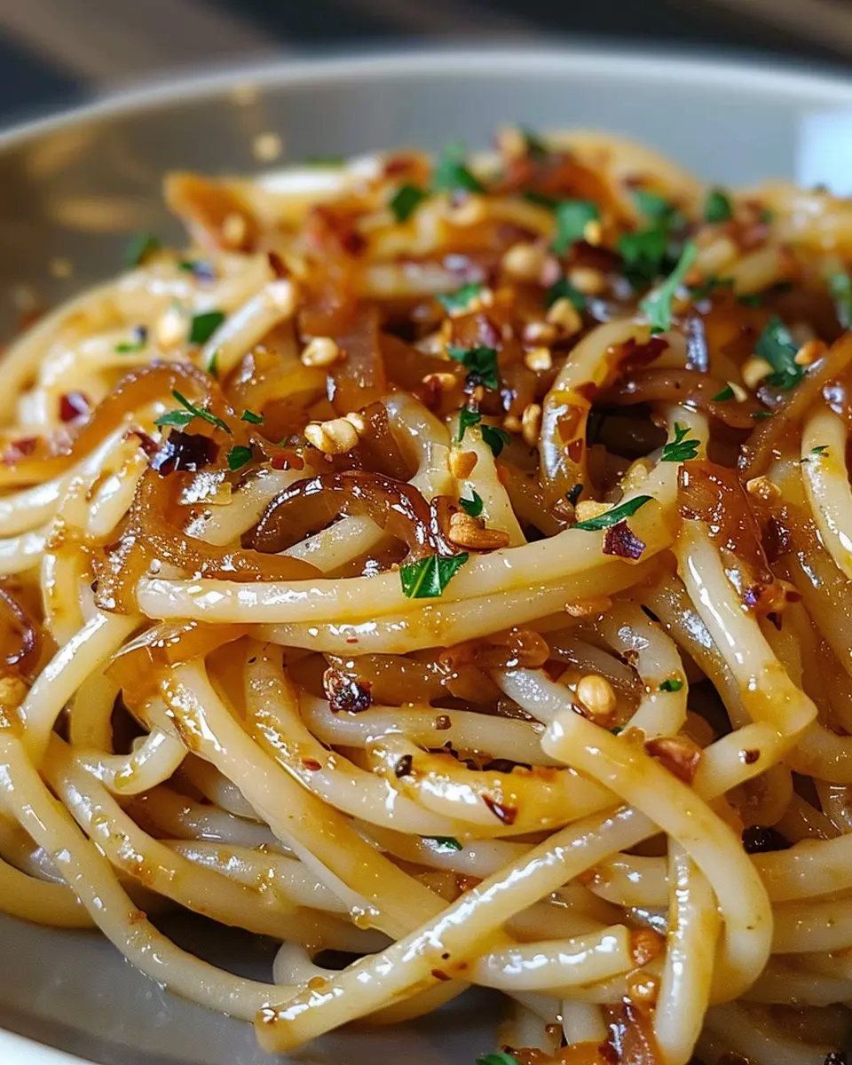 PrintCaramelized Onion Pasta: Indulgent Delight with Chilli Oil