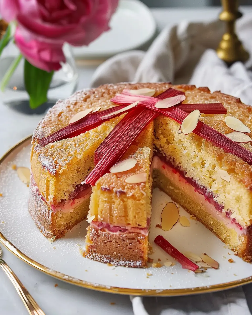 Lemon-Almond Cake: Indulgent Treat with Roasted Rhubarb Delight