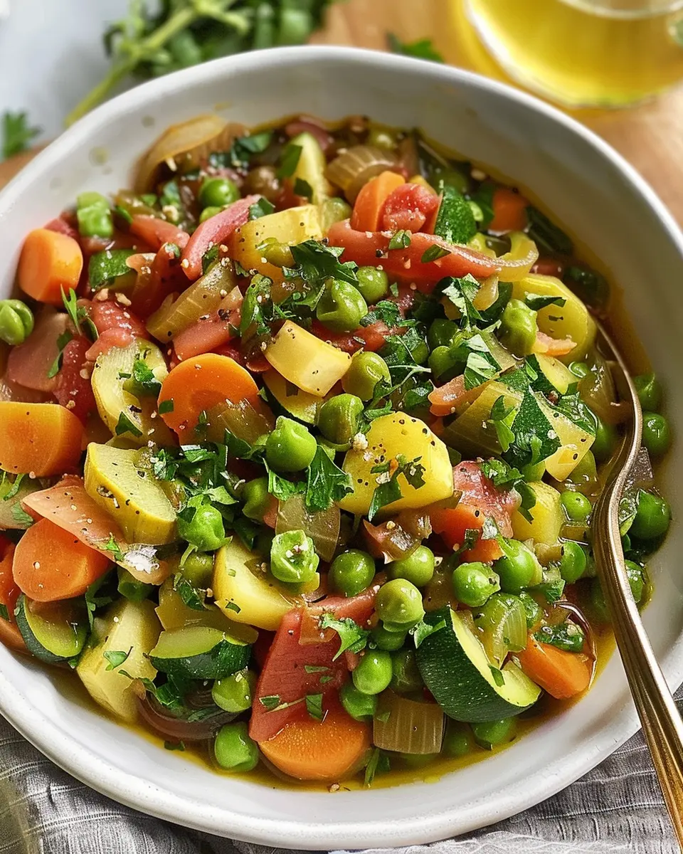 Vignarola Springtime Vegetable Stew: Easy Recipe with Turkey Bacon