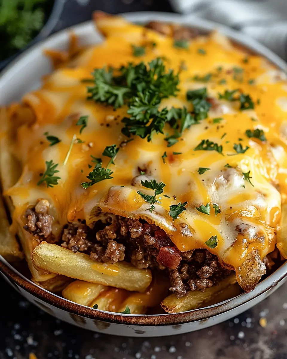 A delicious and easy-to-make casserole that combines the flavors of a classic cheeseburger with crispy French fries.