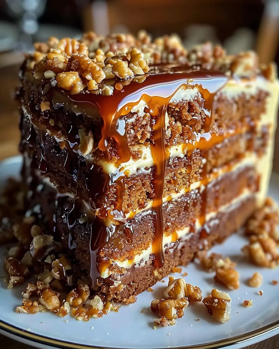 A delightful cake perfect for the holiday season, combining rich flavors and a crunchy topping.