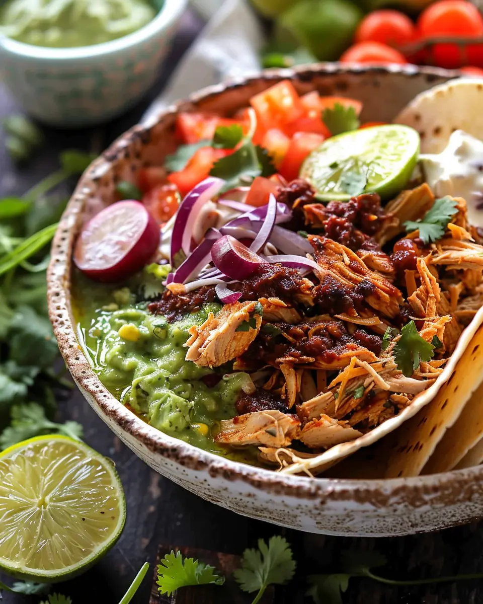 Step-by-step preparation of Crockpot Salsa Verde Chicken Tortilla Bowl