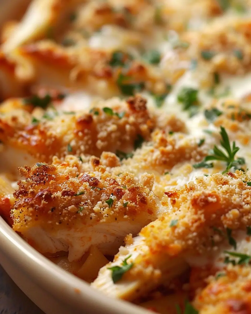 A delightful and effortless Chicken Parmesan casserole that brings comfort to your dining table.