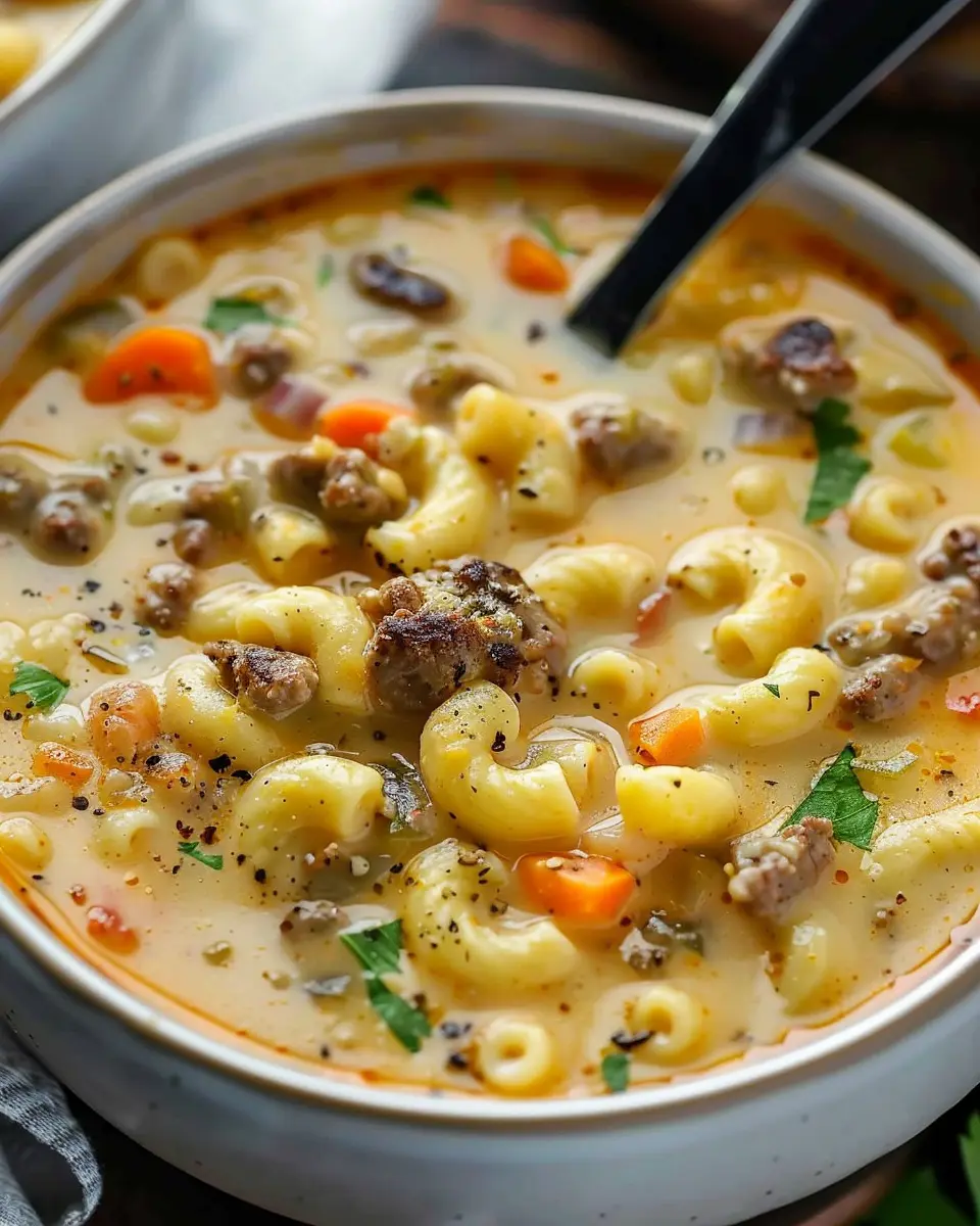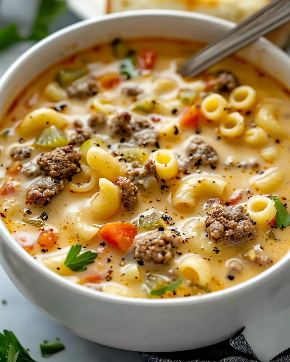 PrintMacaroni Cheeseburger Soup: Indulgent Comfort Food Delight