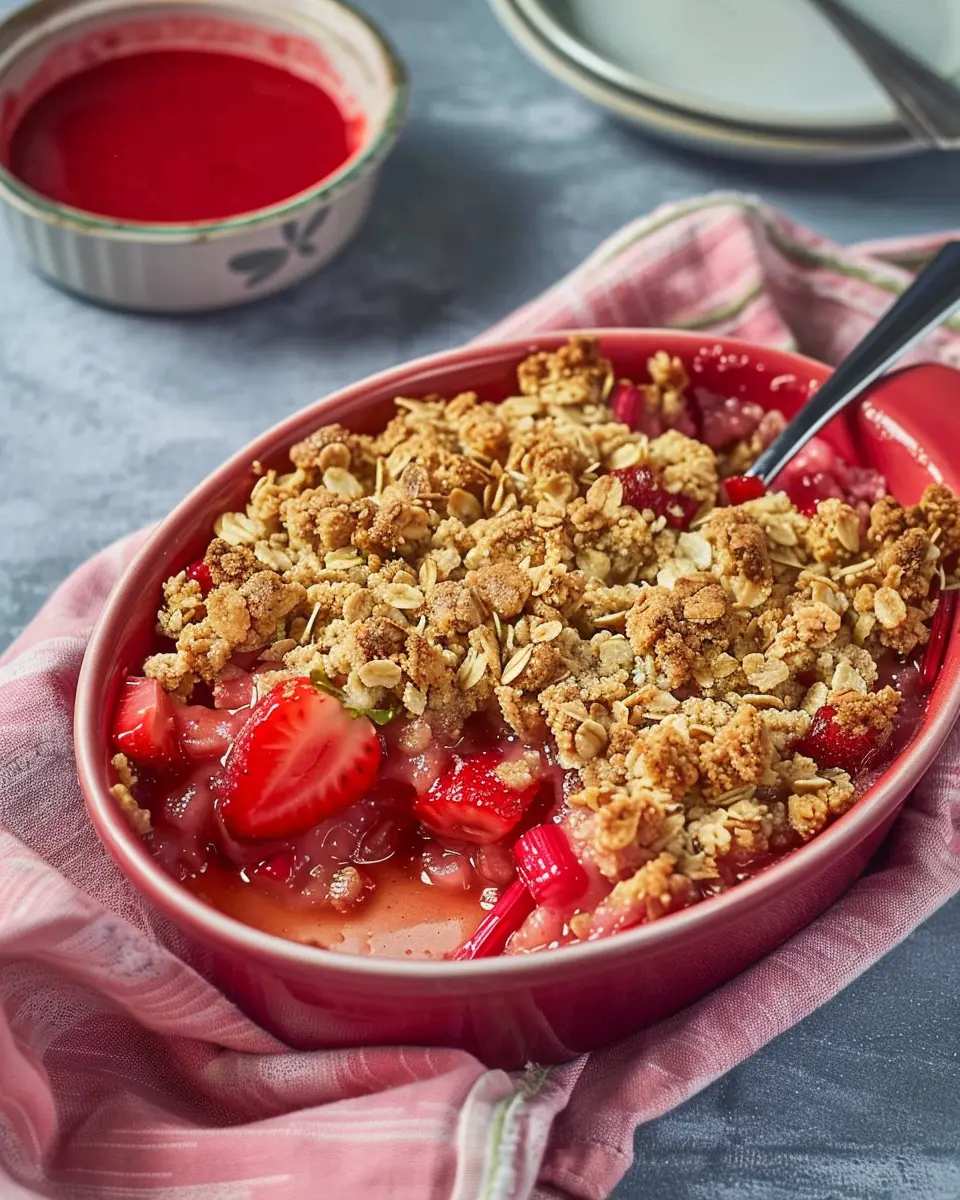 A delicious and nostalgic dessert that combines the sweet flavors of strawberries with the tartness of rhubarb, topped with a golden crisp.