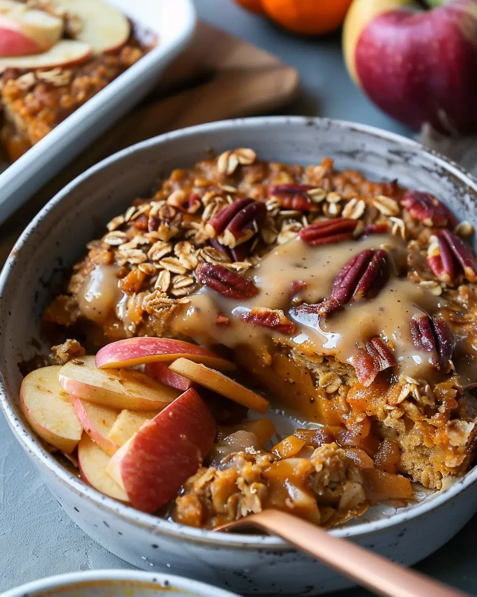 A comforting and nutritious baked oatmeal recipe featuring pumpkin and apple, perfect for breakfast.
