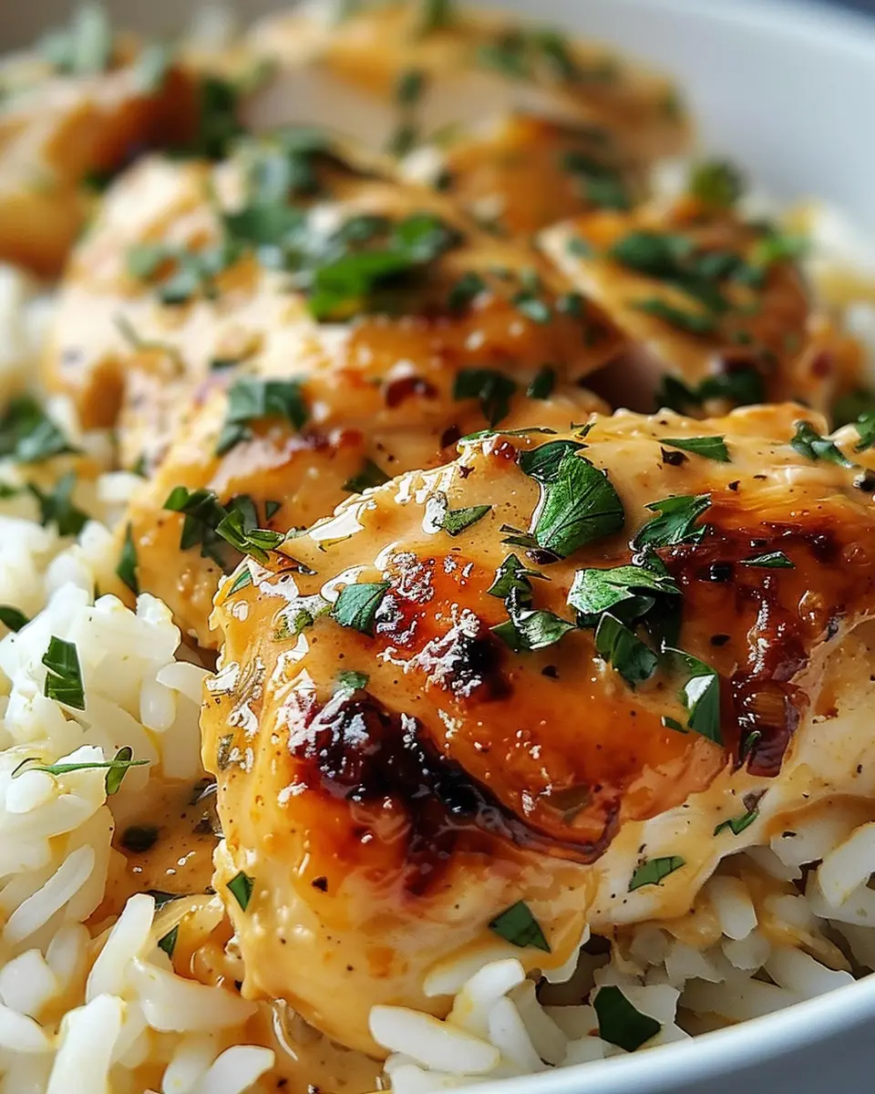 Once everything is warmed and wonderful, it’s time to plate. Fluff your rice with a fork, place it on a serving dish, and ladle that smothered chicken and sauce over the top. Feel free to garnish with some fresh herbs for that beautiful touch.