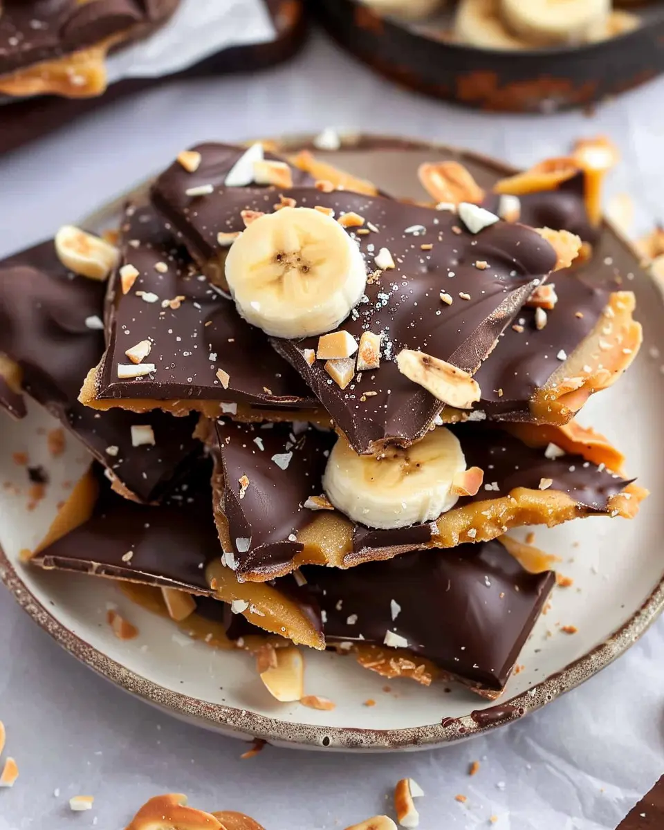 A delicious and easy-to-make chocolate banana bark that is perfect for snacking.