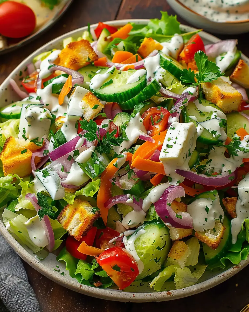A refreshing salad packed with crunchy vegetables and a creamy dressing.